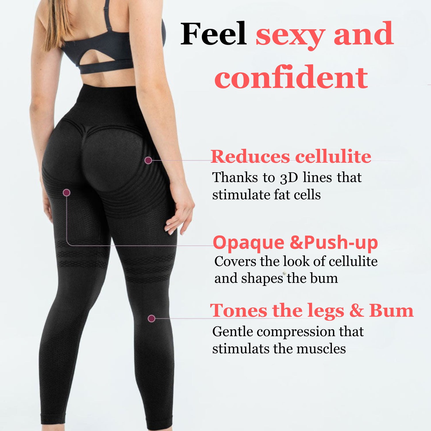 The 3D compression in our leggings creates resistance for your muscles, making your legs work 2 to 3 times harder than without them. When your muscles work harder, they burn more calories to produce energy, helping you lose weight up to twice as fast.”